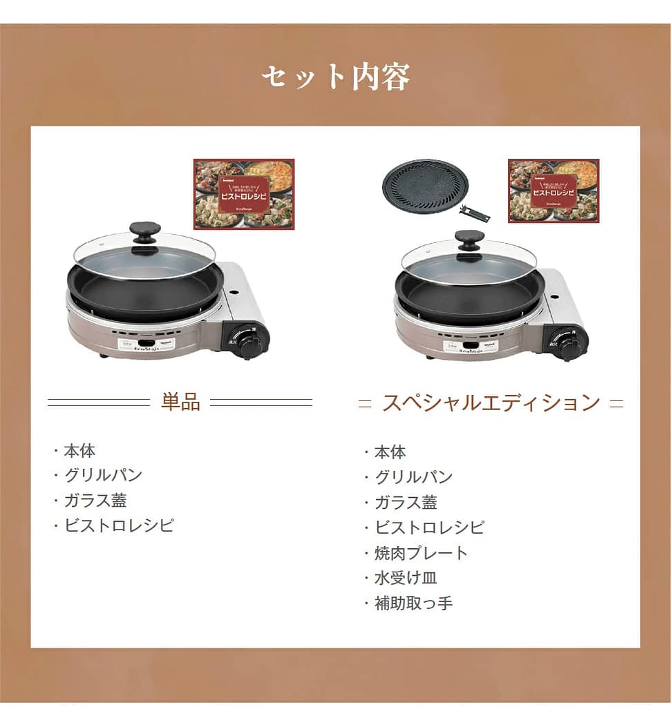 スペシャルエディションエディションには補助取っ手や焼肉プレートがついているので、別で買おうとしていた人はまとめて揃えられるメリットがあります。