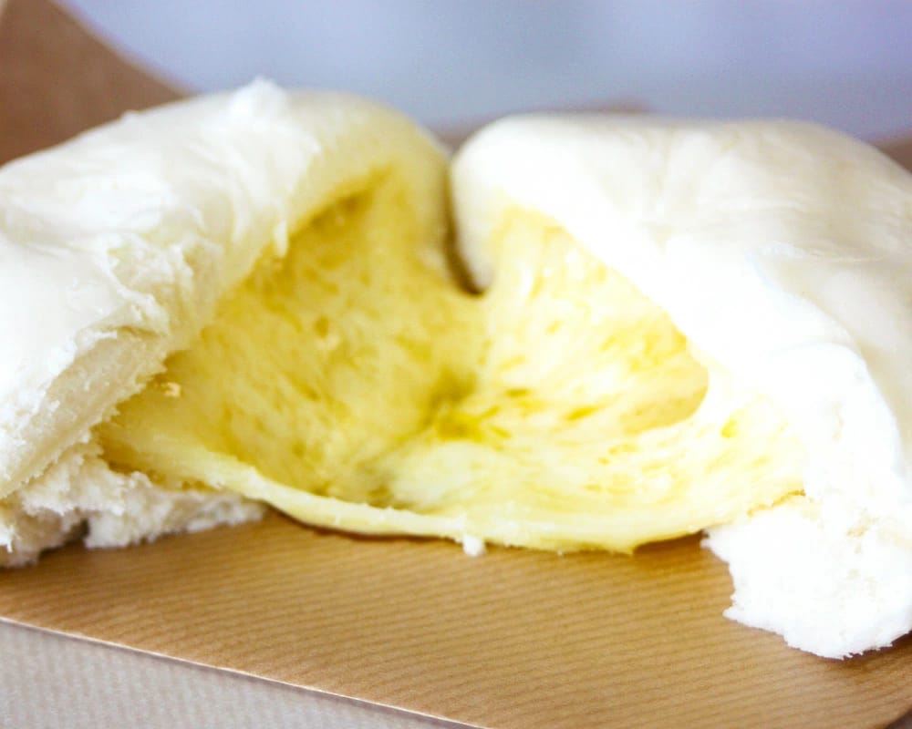 北海道ゴーダチーズ・チェダーチーズ・モッツァレラチーズがバランスよく配合され、チーズがとろーり溢れる中華まん。