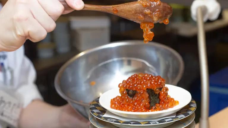 目や耳でも楽しめる豪快いくら軍艦は必見です!