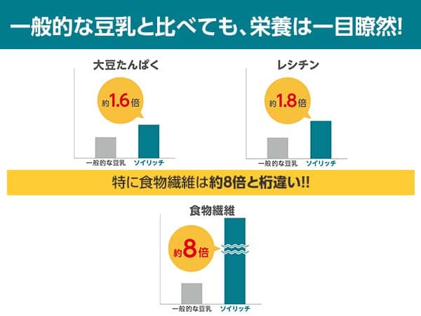 血圧を下げる大豆たんぱくや、血糖値を下げる食物繊維が他の豆乳に比べて豊富に含まれるので、より豆乳の効果を上げられます!